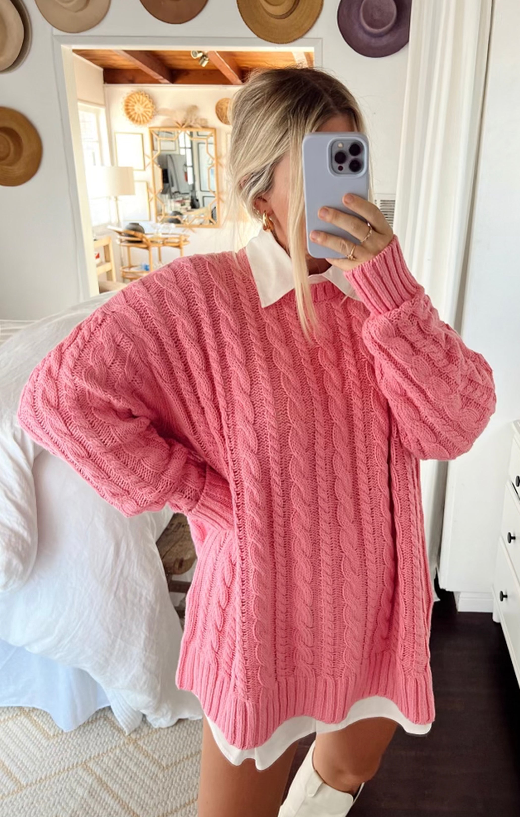 This oversized sweater is just what you need to build your year 'round wardrobe. A closet staple you'll be wearing on repeat! Finish out warm days with your fave denim shorts, a layer over collared shirts, and under jackets when the temperatures drop.