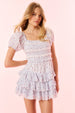 Feeling dreamy in the Fellows Dress. This Victorian-inspired mini features a striped cotton voile fabric featuring a ditsy floral print all over. This piece begins with short puff sleeves with elastication at the openings for comfort, a square neckline that flows to a smocked bodice with horizontal laces stripped throughout, followed by a fitted waist that releases into a flirty skirt.