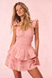 Loving on the Lovine Dress. This medium weight dress debuts with a striped cotton dobby fabric giving it an elevated texture. Delicate, vintage-inspired laces are stripped throughout the body. The piece begins with short, elasticated flutter sleeves above a slightly v-neckline that falls to smocked bodices which releases into a cute, two-tiered skirt.