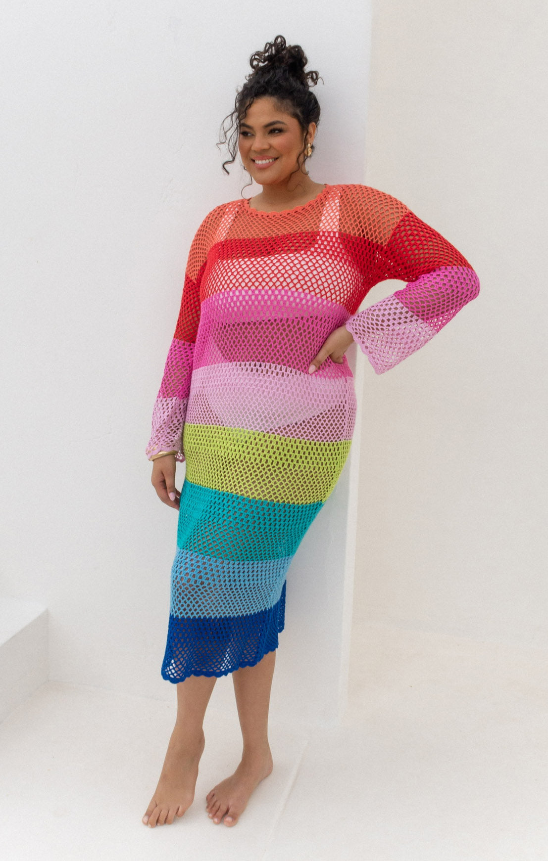 Your favorite coverup is now a midi! Feel oh so chic in this bright stripe crochet pullover! Wear the Paula as your new favorite swim coverup or throw it on over a tank for an easy warm weather look.