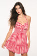Introducing the Trishelle Dress arriving as part of our America’s Sweetheart Cotton Collection. This midsummer mini stuns with an all-American classic gingham print all over. The piece begins with a self-tie halter neckline above the bust which also features a tie detail above a flirty cut out. Below the bust is a smocked waistband that releases into an ever-flowing skirt that hikes up slightly on the side giving this mini a feminine and playful silhouette.
